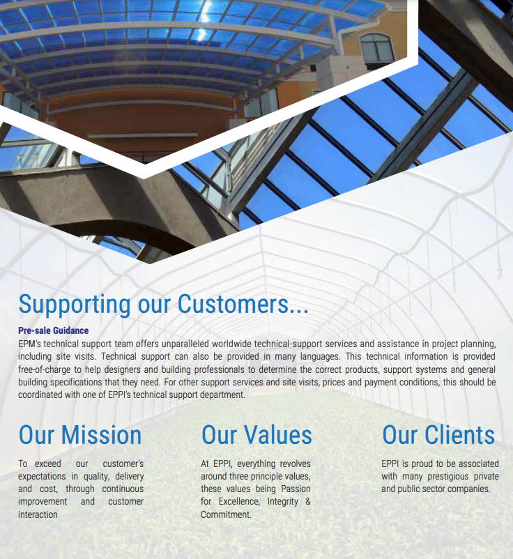 Polycarbonate sheets offer the highest levels of glazing performance where transparency or tailored light transmission along with high impact strength is of vital importance. Their versatility makes them the ideal choice for glazing in hospitals, schools, sporting arenas and public infrastructure projects. They are available in transparent (compact sheets) & textured (emboss sheets) finishes.
